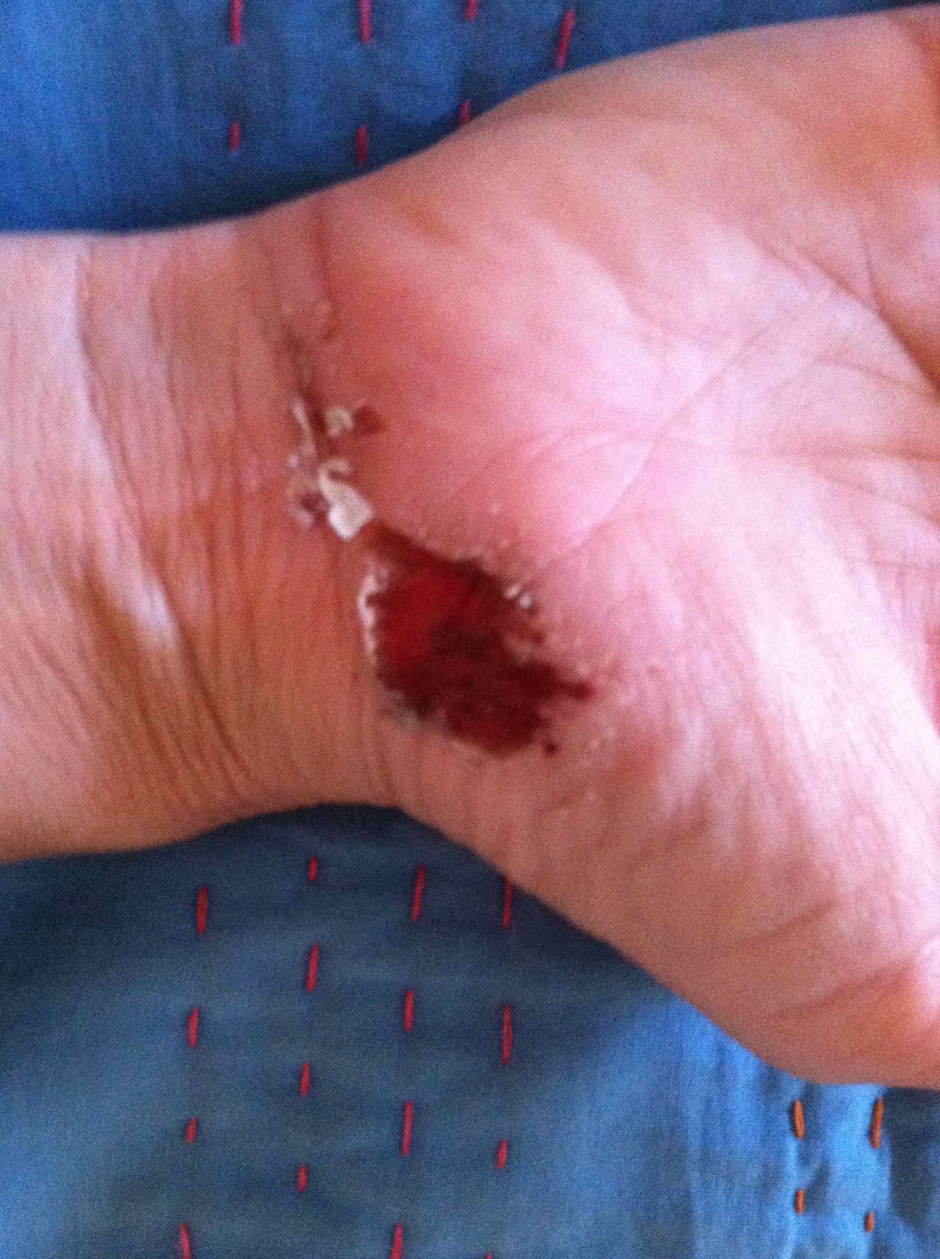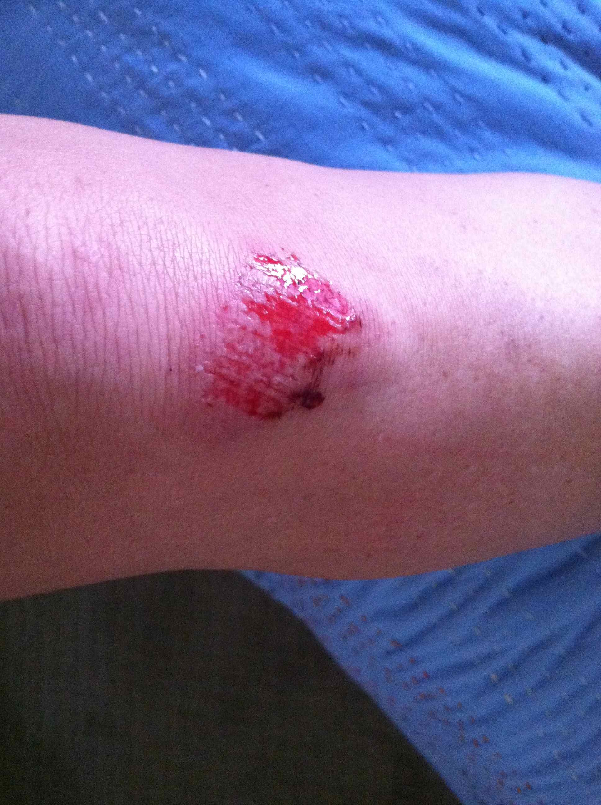 Some minutes later he arrived, my knight in the shining silver Jeep (my man keeps a clean car) and scraped me up off the ground.  CMB cleaned and dressed my weeping wounds with the attention and care of an endlessly patient husband turned healer.  I cried and cried, not only because I was in pain, but also since (although I haven’t had any formal training) I really have a flair for drama.